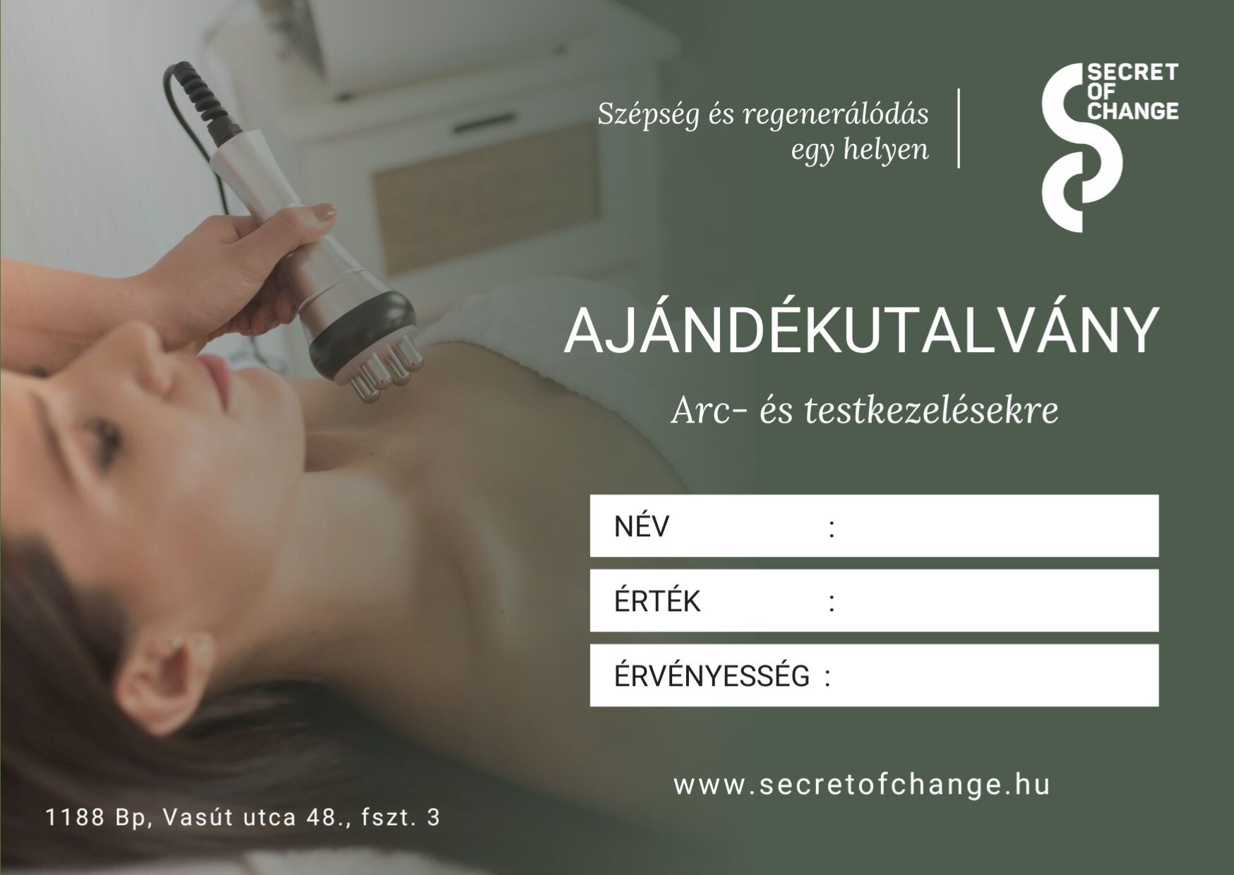 Az ajándékutalvány igénybe vehető arckezelő szolgáltatásainkra, melyek listáját megtalálod a „Szolgáltatások – Test- és arckezelések” menüpontban.